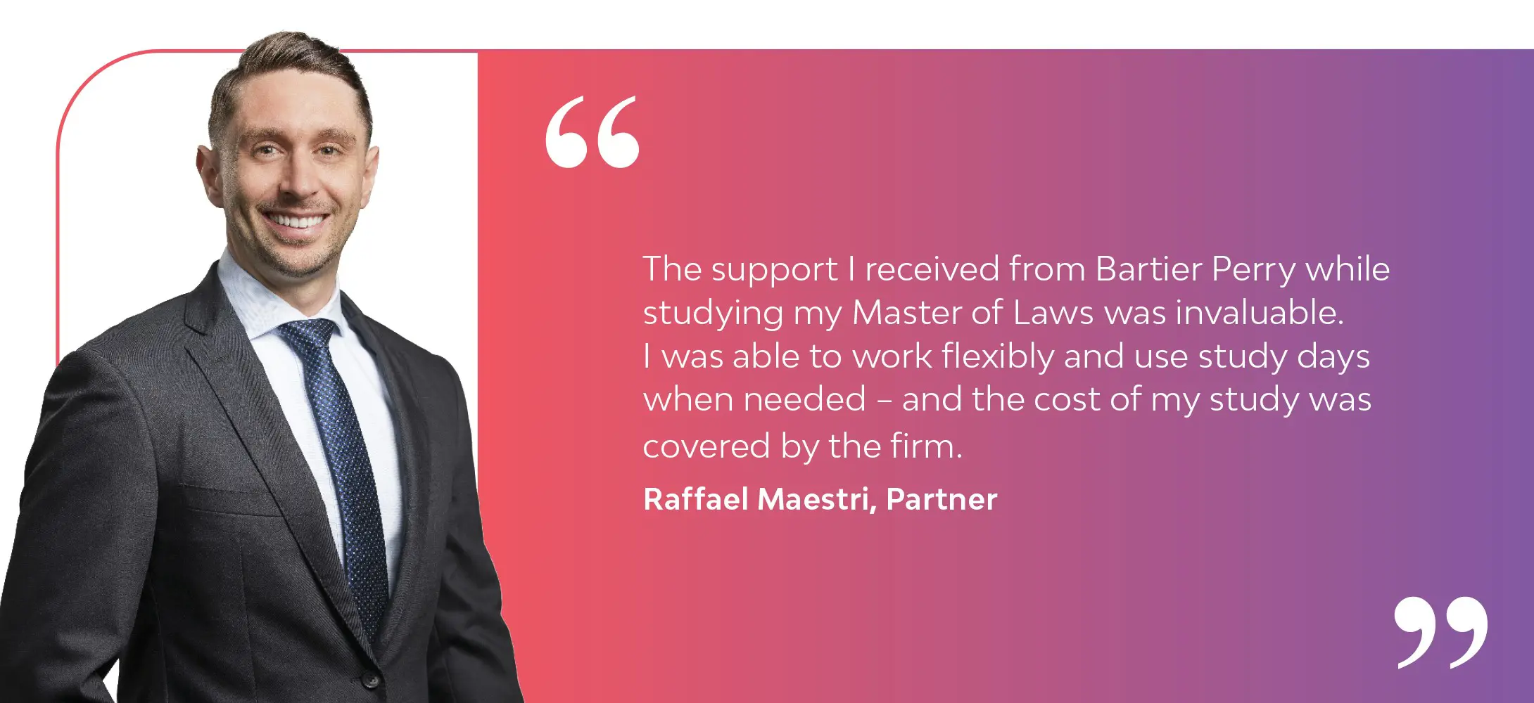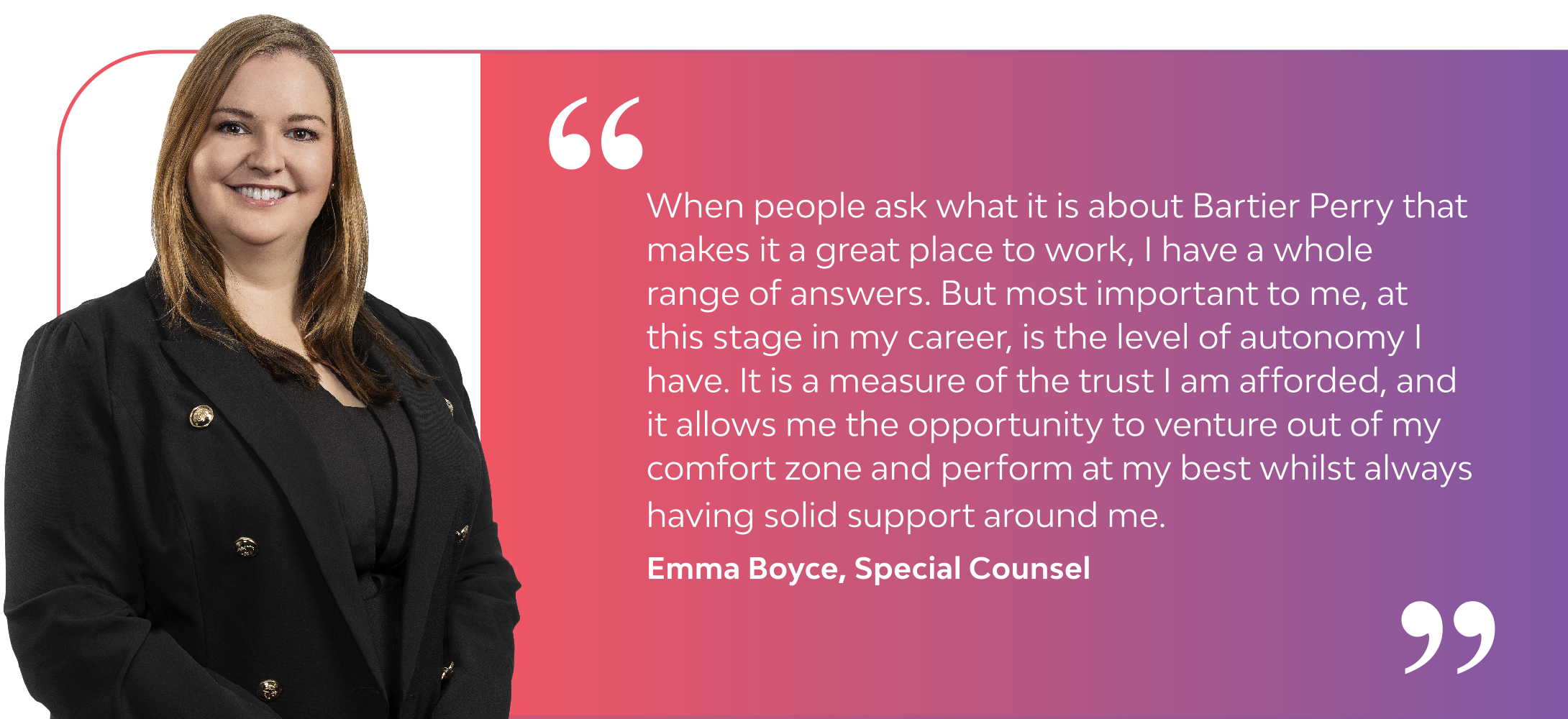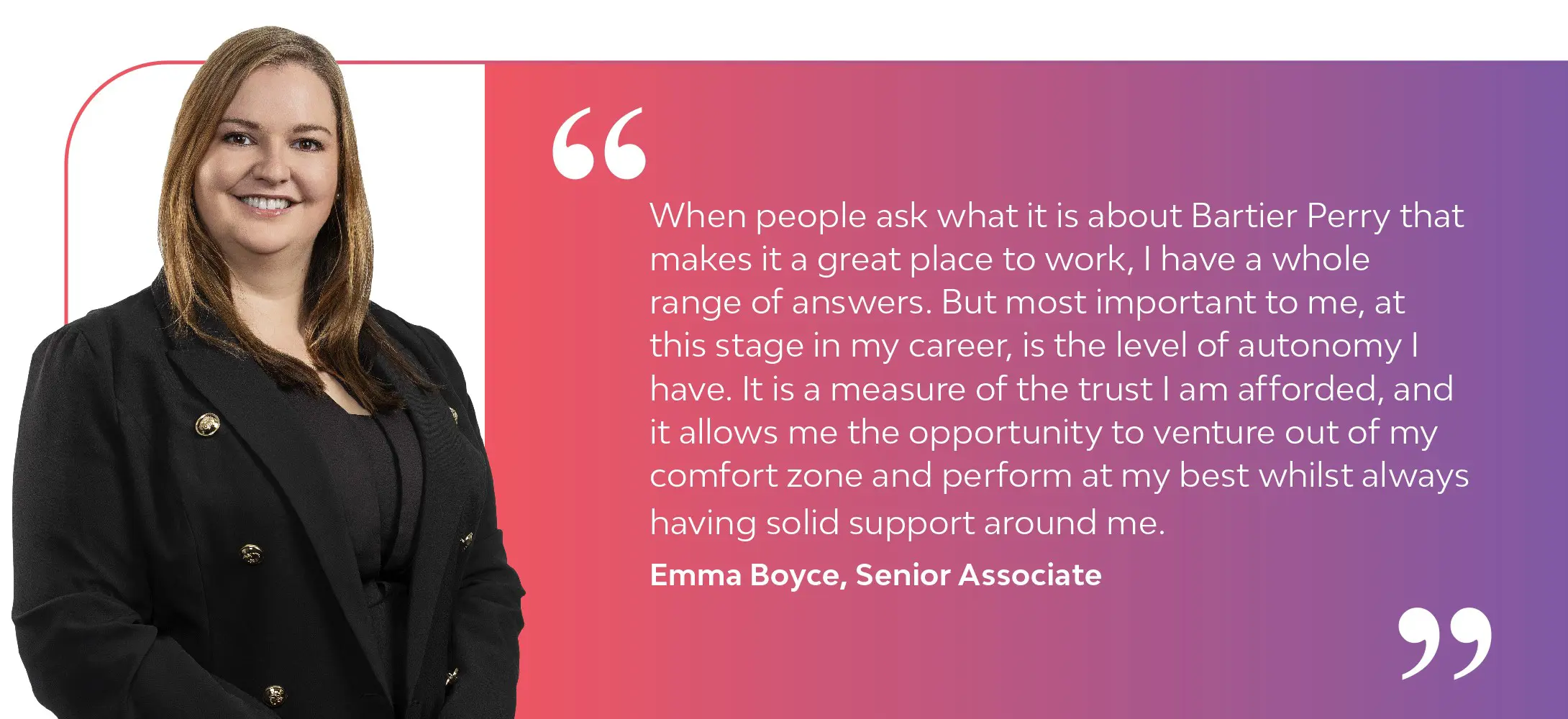 Bartier Perry is a firm where our culture drives all that we do. This means we are down-to-earth and high-performing whilst ensuring work-life balance. We work respectfully with each other, our clients and with the broader community.