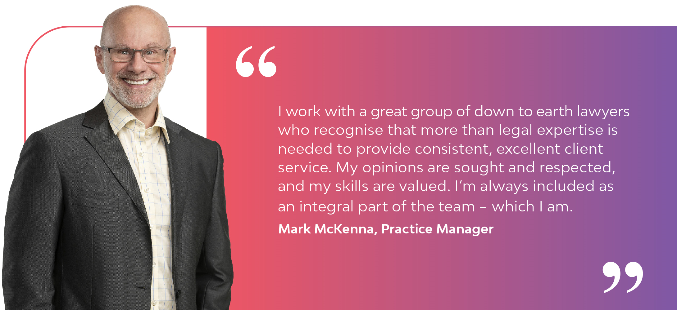 From our accessible partners who actively mentor and provide guidance, through to secondment opportunities with industry leading clients, we enable our people to flourish both professionally and in their lives away from work.