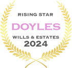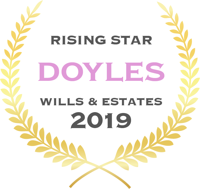 Being listed in the 2019, 2020, 2022, 2023 and 2024 Doyle's Guide as a Rising Star in Wills, Estates & Succession Planning in Australia. The listing details non-Partner level lawyers practising in either of contentious or non-contentious wills, estates and succession planning law matters across all Australian legal markets who have been identified by senior level Wills and Estates lawyers and barristers for their knowledge and expertise in these areas.